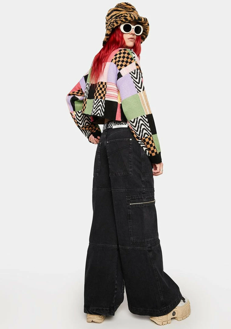 cuz you march to the beat of your own drum. These wide leg denim jeans have a low rise fit, cargo pockets all over, and a zip-fly closure.