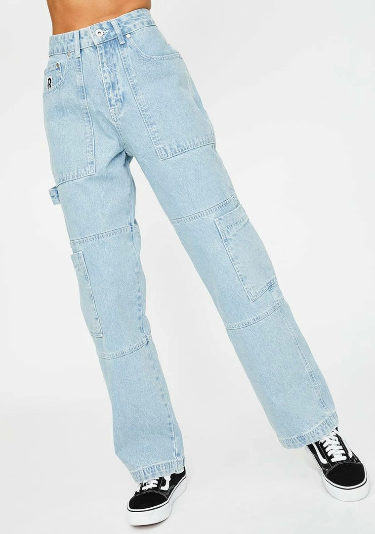 gotcha fightinΓ’ΒΒ off the haters, sis! Tell Γ’ΒΒem to get lost in these rad straight leg denim jeans that have sikk cargo pockets all ova, a high waist fit and zipper fly closure.