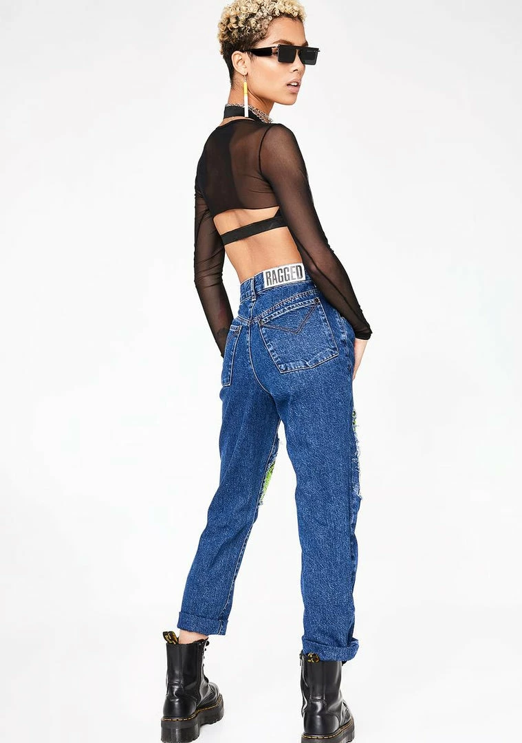cuz youΓ’ΒΒre babe AF. Seduce Γ’ΒΒem on the regular with these dope AF mom jeans that have a high waist, snakeskin inserts, and a straight leg fit.