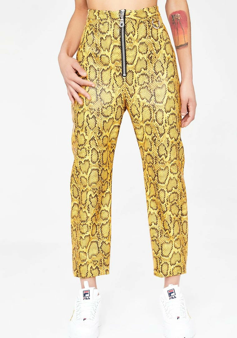 cuz you always turn heads. Get down in these vibrant AF snakeskin pants that have a high waist, front zip closure, and a straight leg fit.