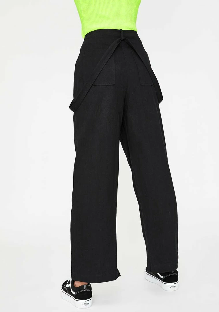 will have ya feelinΓ’ΒΒ like youΓ’ΒΒre on top of the world! Yer all business in these high waisted drill-style trousers that have detachable suspender straps, zip up details, relaxxed straight legs, and back pockets.