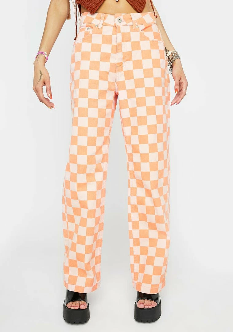 Coupon 🤩 The Ragged Priest Bottoms Orange Rook Checkered 👖 Jeans 🛒