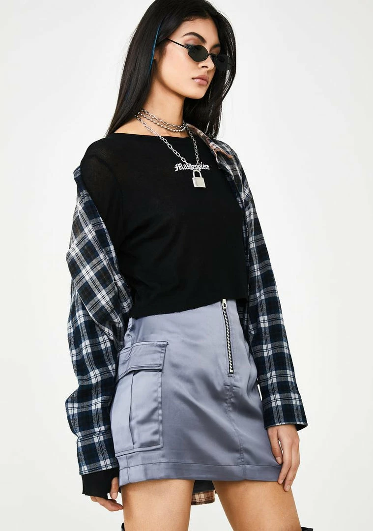 do you love that you hate me or hate to love me. Look dope AF in this sikk cargo skirt that has a high waistline, side pockets and exposed front zip closure.