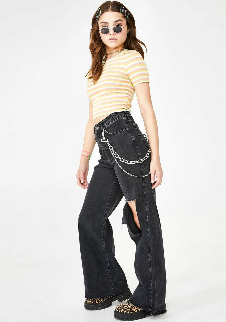 Coupon โ๏ธ The Ragged Priest Bottoms Trip Flared ๐ Jeans With Knee Rip โ๏ธ