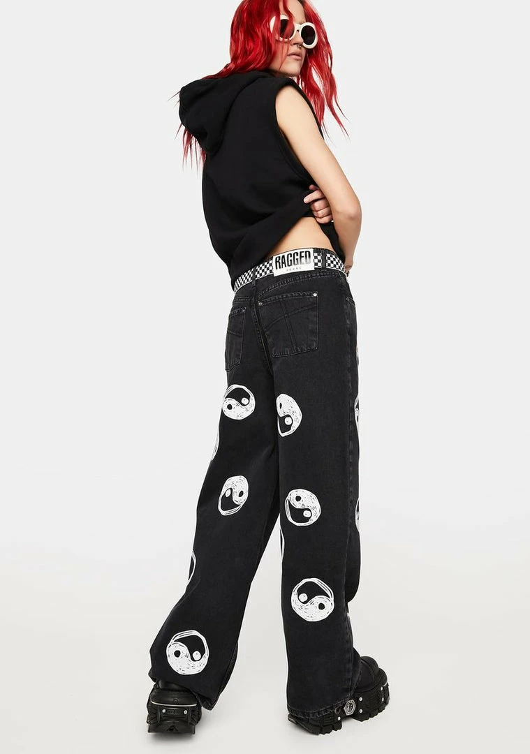 Cheap ๐ The Ragged Priest Boyfriend ๐ Jeans Charcoal Yin Yang Printed Release ๐ Jeans ๐งจ