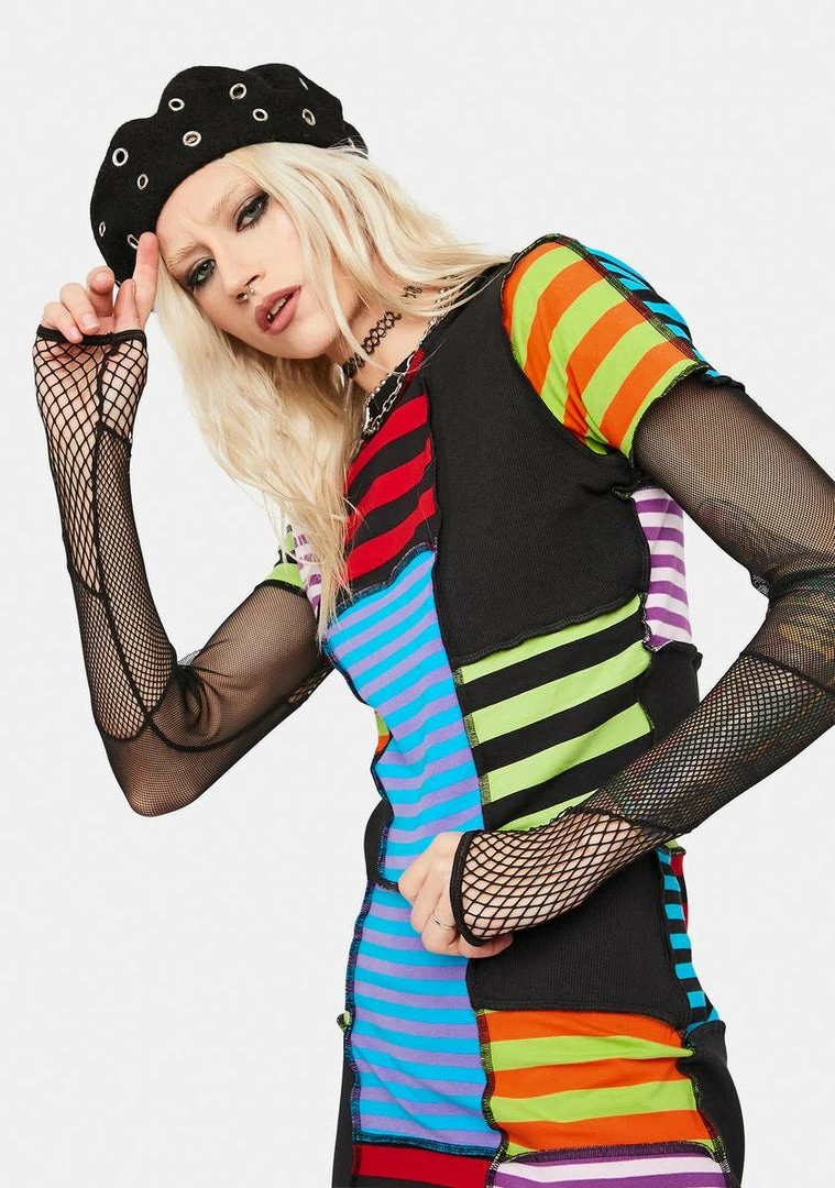 Best deal 🌟 The Ragged Priest Breaker Patchwork Stripe Crop Top 💯