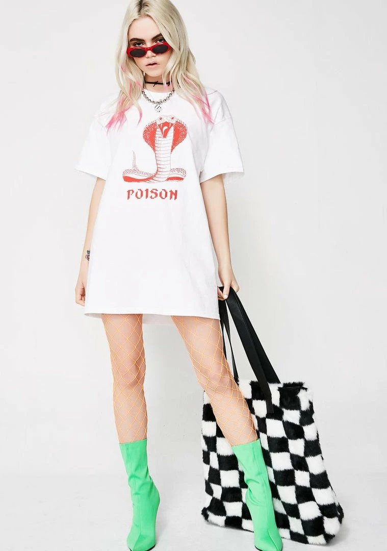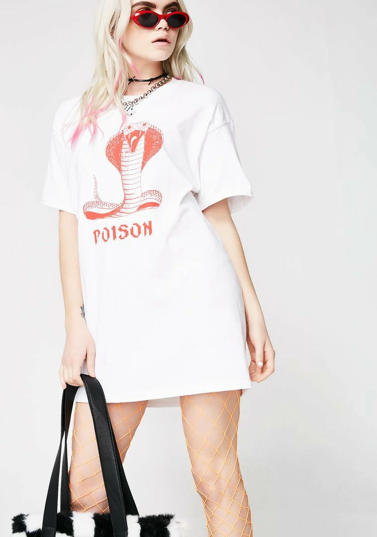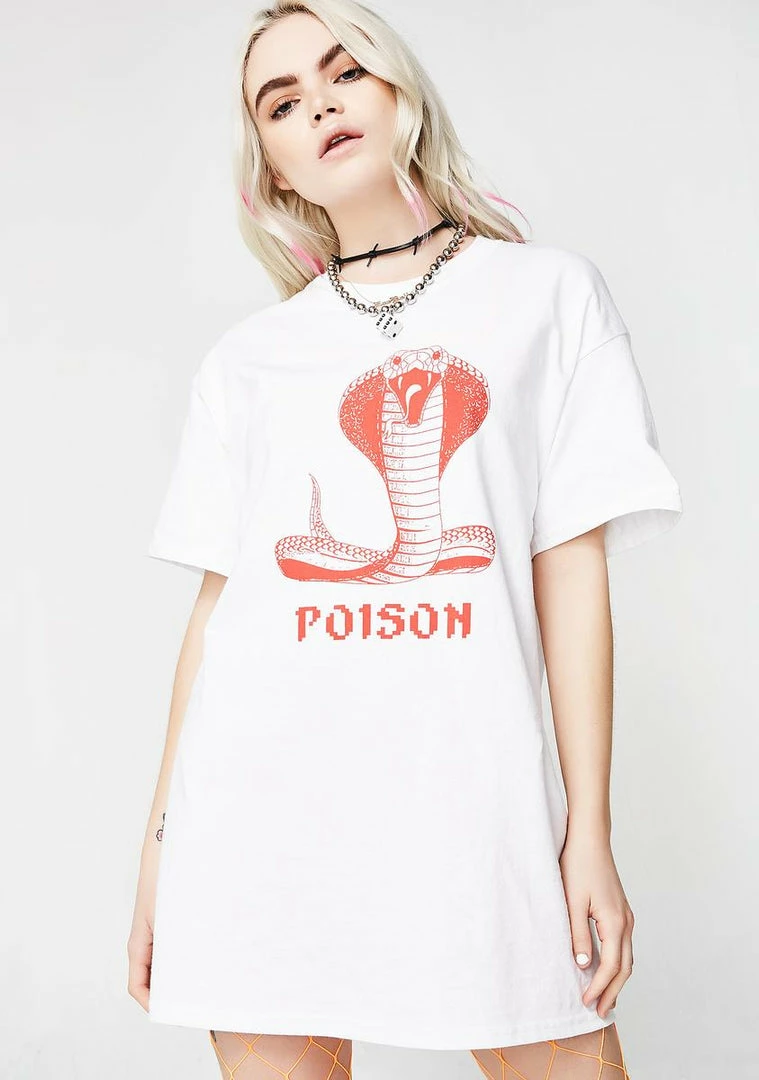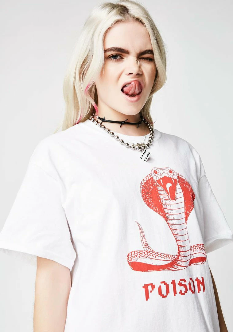 will let Γ’ΒΒem know youΓ’ΒΒre dangerous. This white tee has a round neckline, short sleeves, and a red snake graphic on the front with Γ’ΒΒPOISONΓ’ΒΒ text underneath.