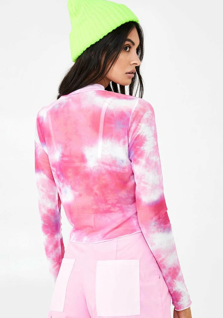 gotcha lewkinΓ’ΒΒ shakinΓ’ΒΒ not stirred, bb. Look cute AF in this supa sweet lil long sleeve mesh top that has a freaky tie dye pattern all ova NΓ’ΒΒ high neckline.