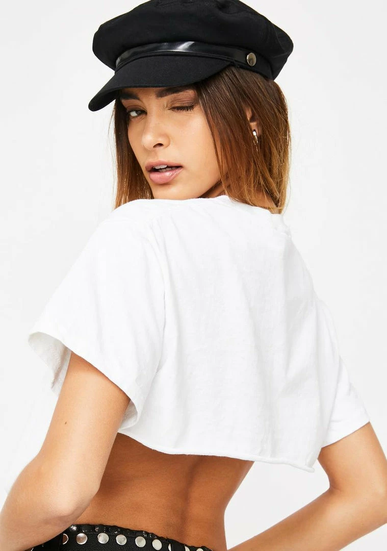 cuz you canΓ’ΒΒt help but show off, babe! Stay naughty in this supa sassy cropped tee that has short sleeves, a round neckline, and trigger hook hardware.