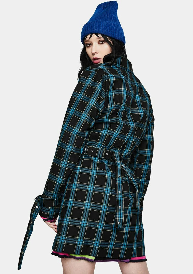 cuz you teach รขยยem a lesson. This plaid blazer dress has pockets on the front, eyelet strap details and buckle hardware.