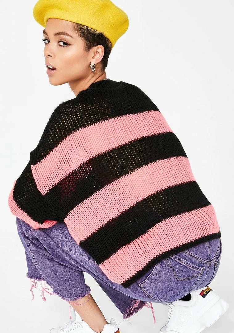 cuz youΓ’ΒΒre the babe generation. Rep ya dope crew in this comfy N’ soft AF sweater that has a relaxxed fit, crew neckline, and a dope asymmetric stripe design.