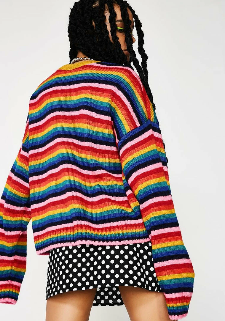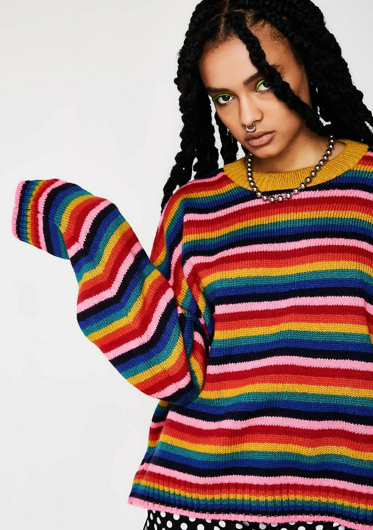 รขยยcuz that afterglow looks good on ya. This oversized knit sweater gives ya room to shine with long sleeves and a dope nรขยย cozy rainbow material.