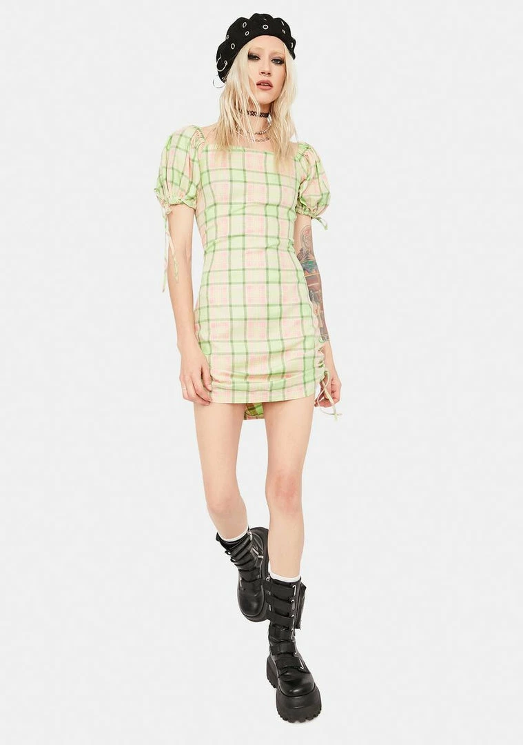 Deals โจ The Ragged Priest Memory Ruched Plaid Mini ๐ Dress ๐