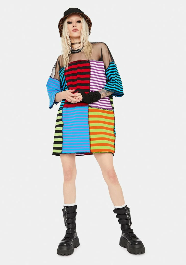 Deals 💯 The Ragged Priest Nerve Patchwork Stripe Tee 👗 Dress 👗 Dresses 👏