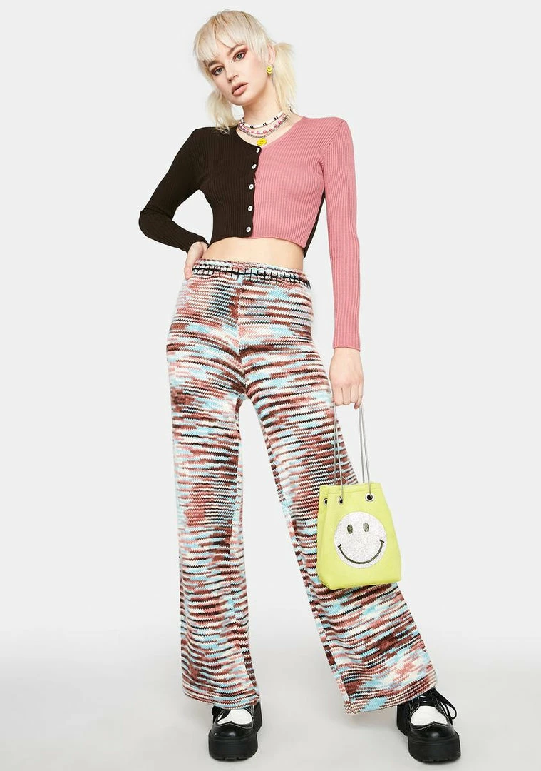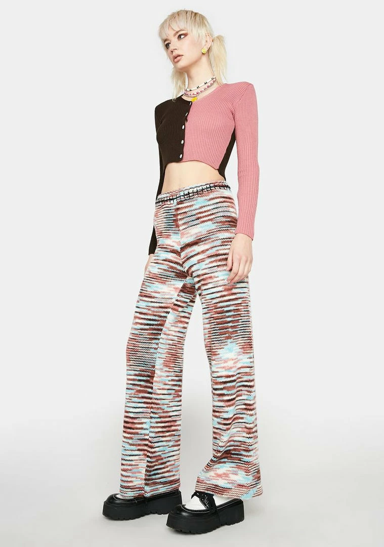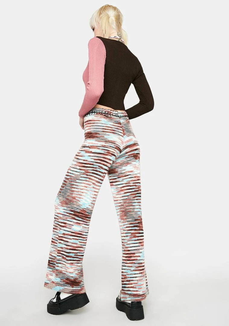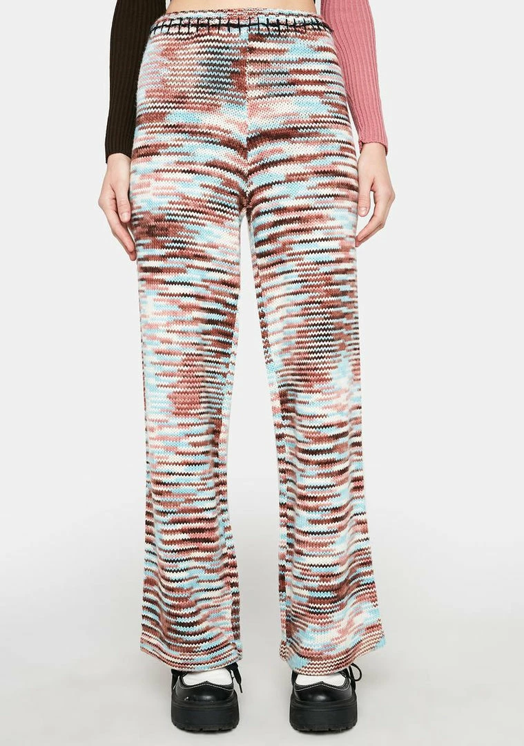 cuz it’s your way or the highway. These knitted pants have a space dye pattern, an elastic waistband, and a mid waist fit.