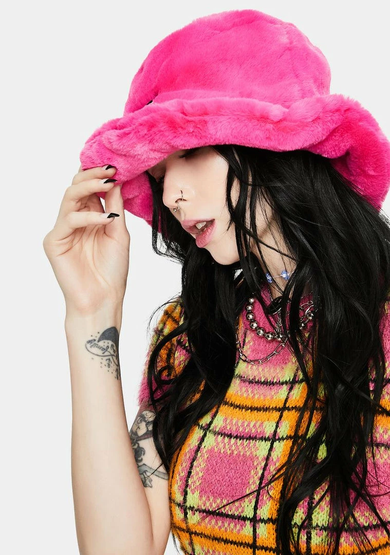 Hot Sale โ๏ธ The Ragged Priest Pink Candid Faux Fur Bucket Hat Hats ๐ฅฐ