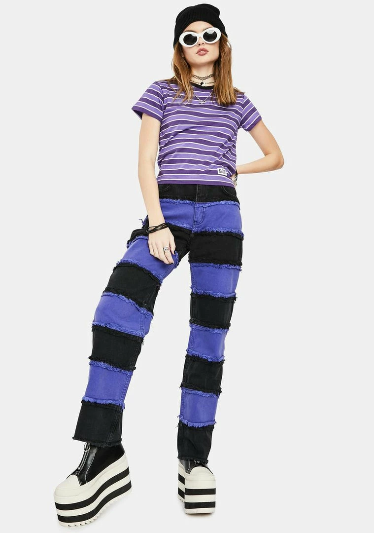 Budget ๐ The Ragged Priest Purple Infringement Stripe Panel ๐ Jeans โ๏ธ