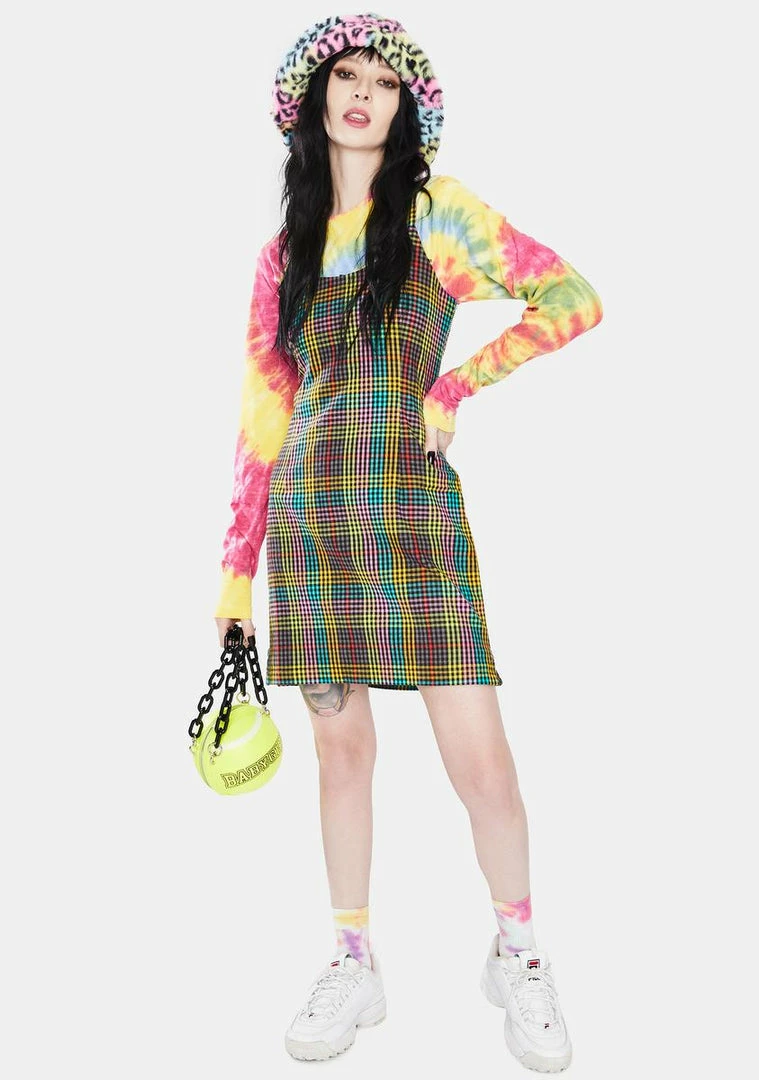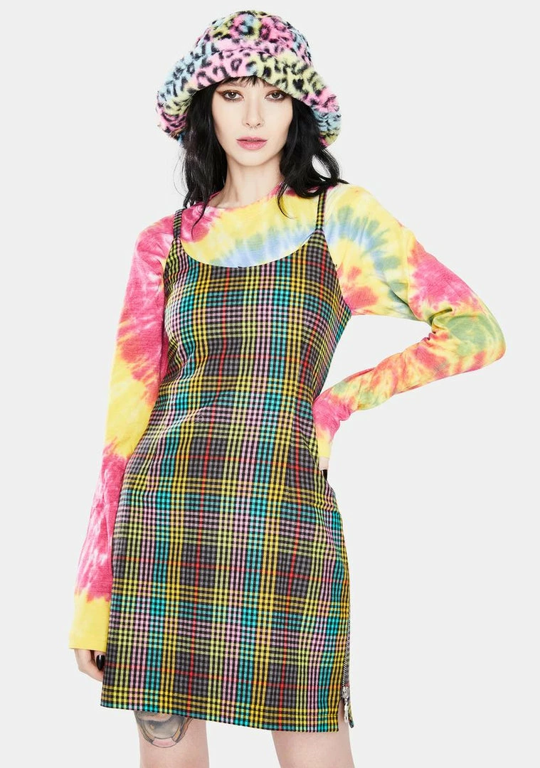 cuz youΓ’ΒΒre brave through it all. This cami mini dress has a multicolored check pattern all over and zip closures on the sides.