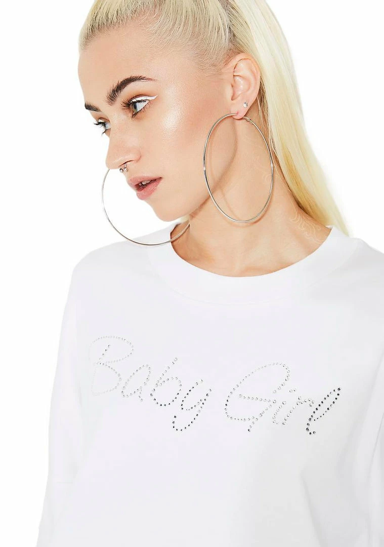 youΓ’ΒΒre the cutest lil thing theyΓ’ΒΒve eva seen. Make Γ’ΒΒem luv ya with this top that features a loose boxy fit, round neckline, baggy sleevez, and silver bedazzled Γ’ΒΒBaby GirlΓ’ΒΒ text goinΓ’ΒΒ across the chest.
