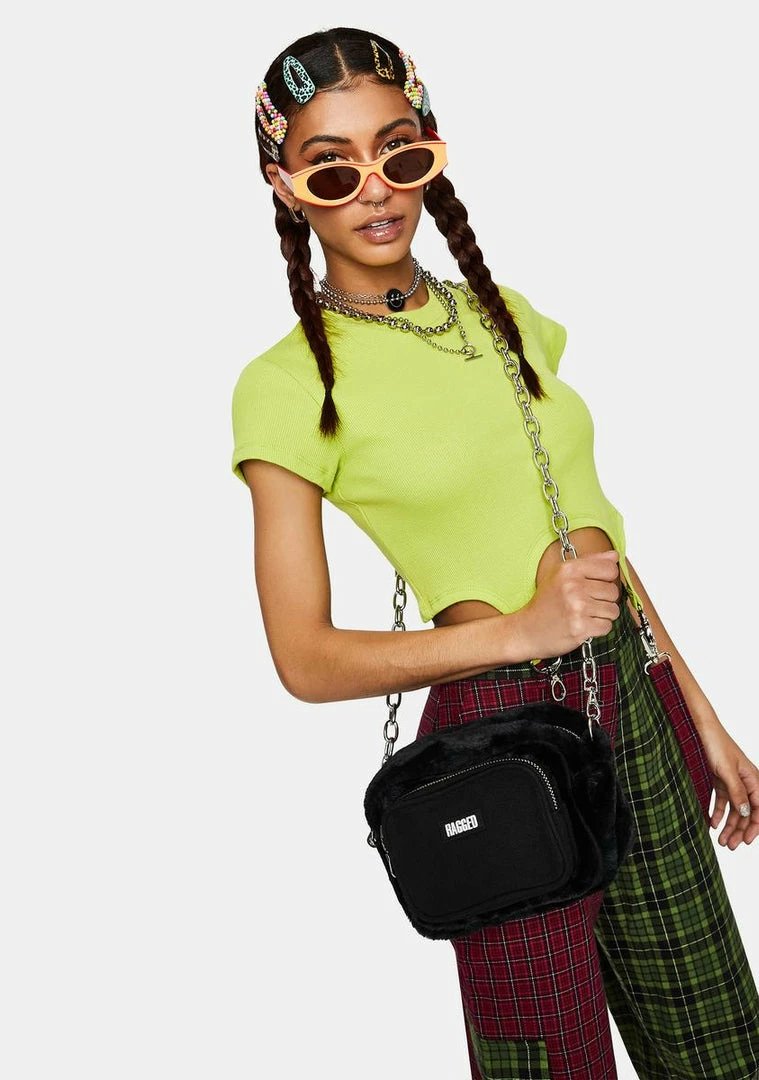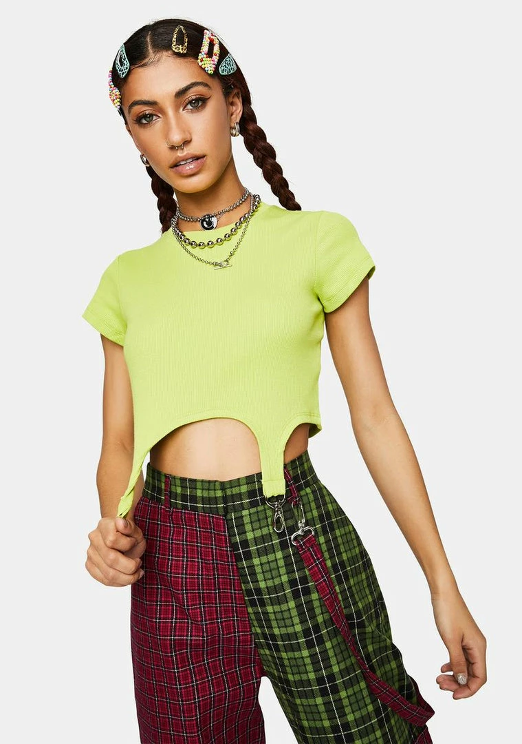 cuz youΓ’ΒΒre feelinΓ’ΒΒ extra. This ribbed crop tee has short sleeves and trigger hook straps on the front.
