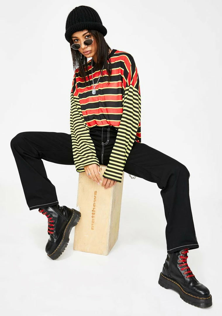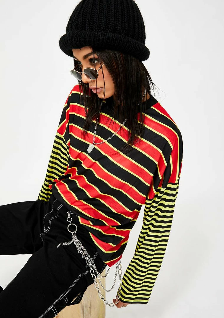 gotcha goinΓ’ΒΒ places, sis! Find some thrilling ish in this dope long sleeve tee that has a two-tone striped pattern, crew neckline NΓ’ΒΒ relaxxxed fit.