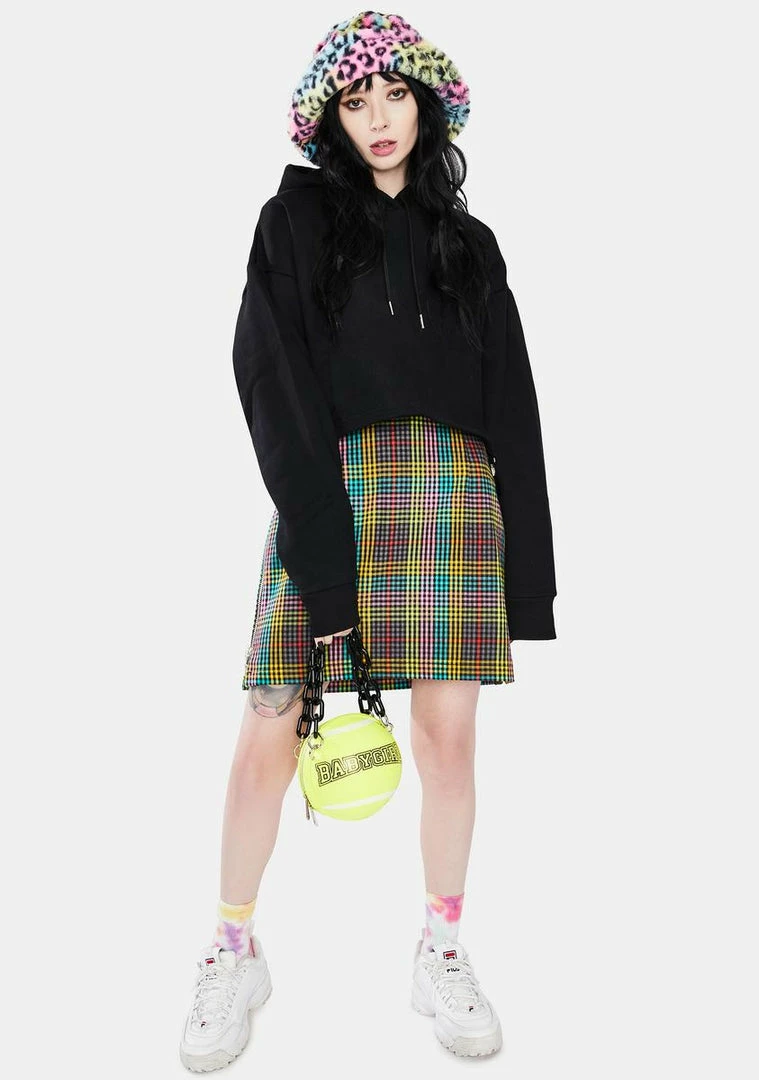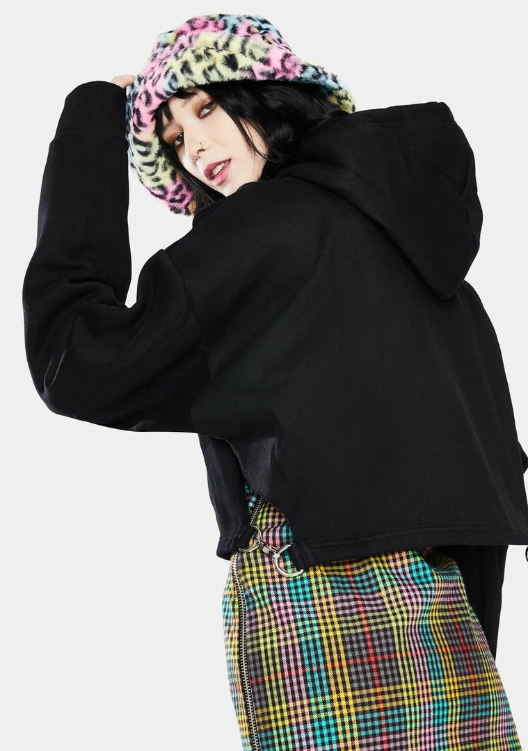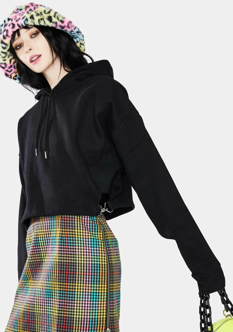 show your true colors, babe. This cropped hoodie has drawstring pulls, waist side cut-outs, and trigger hook hardware.