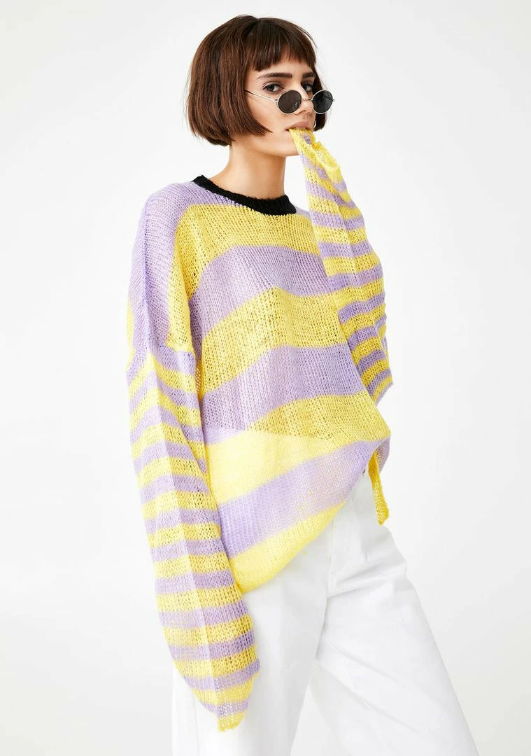 will have ya fueled up, bb! Look dope AF in this supa soft knit sweater that has a contrast neckline, oversized fit, and a stripe pattern all ova.