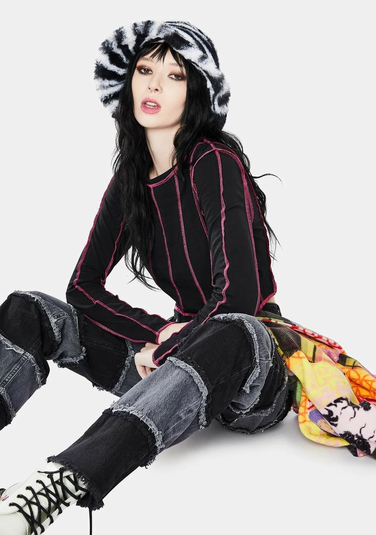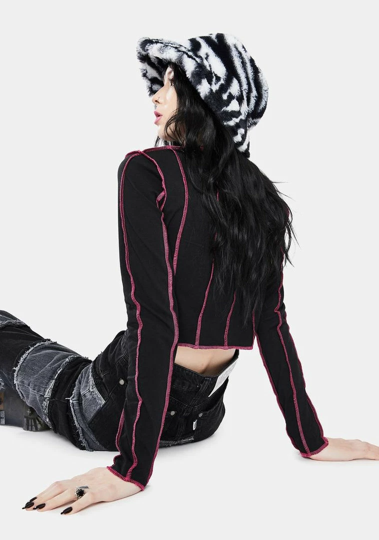 got รขยยem blinded by your love. This long sleeve ringer tee has a cropped fit and contrast pink overlocked seams.