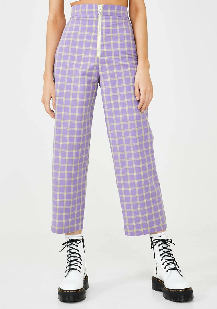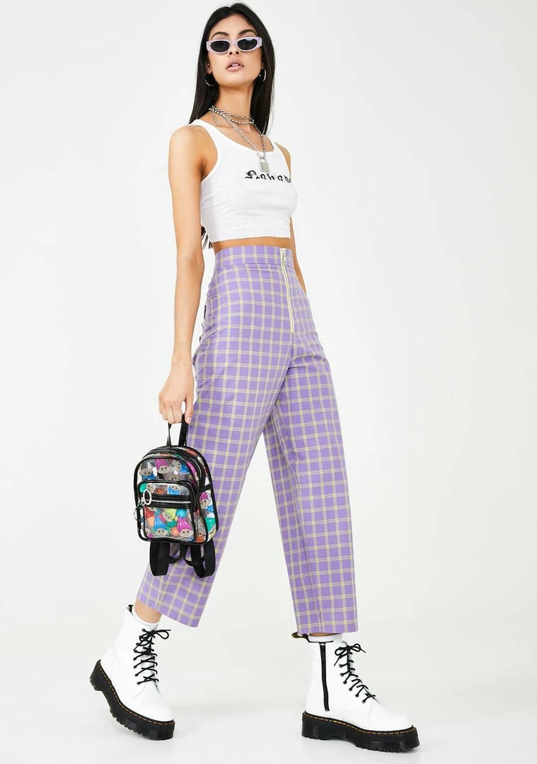 take classroom chic to new levels, babe. Look bomb AF in these high waist trousers that have a sikk checkered print all ova, exposed front zip closure, and cropped fit.