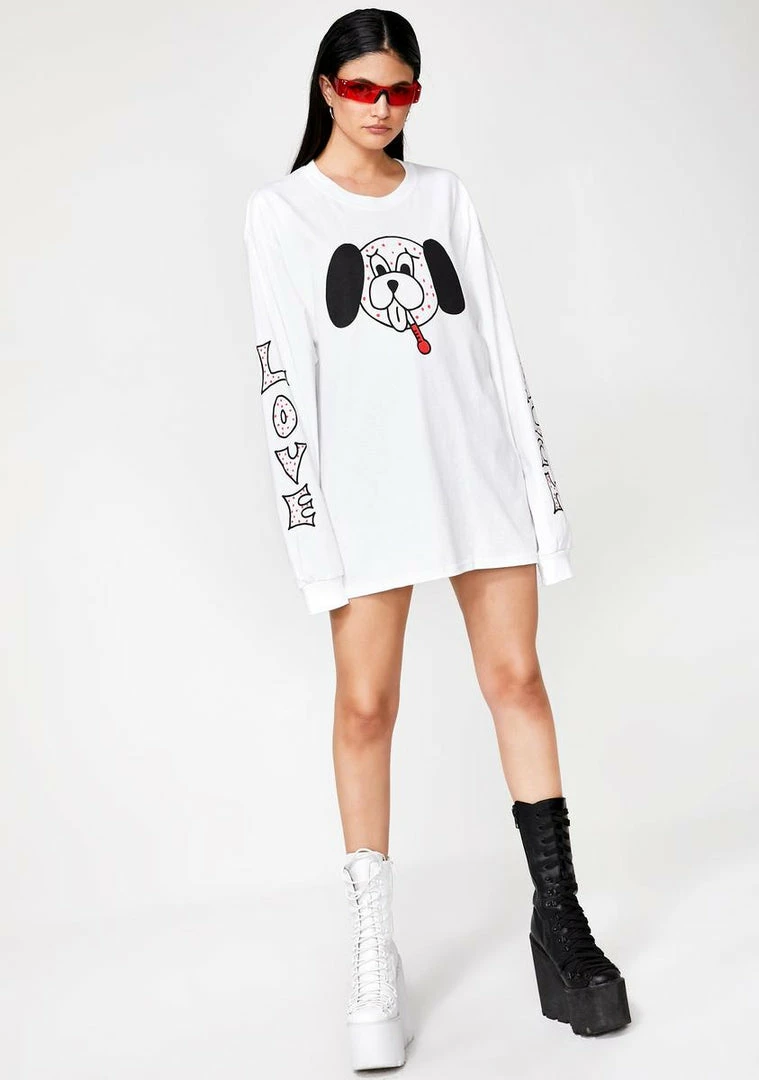 will give Γ’ΒΒem a flash fever babe. YouΓ’ΒΒre sick of love in this sassy t-shirt that has long sleeves, a relaxed fit, and graphics on the front NΓ’ΒΒ arms.